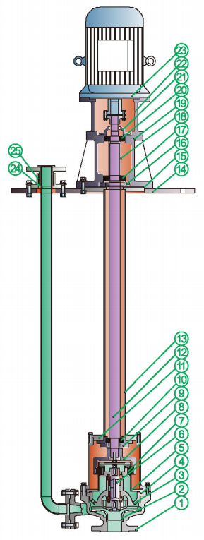 2. Komponen aliran (badan pompa, rotor, penutup, impeller, selongsong, poros) tersedia dalam bahan 304, 316, 316L, 904, TA2, he276 dan bahan lainnya.