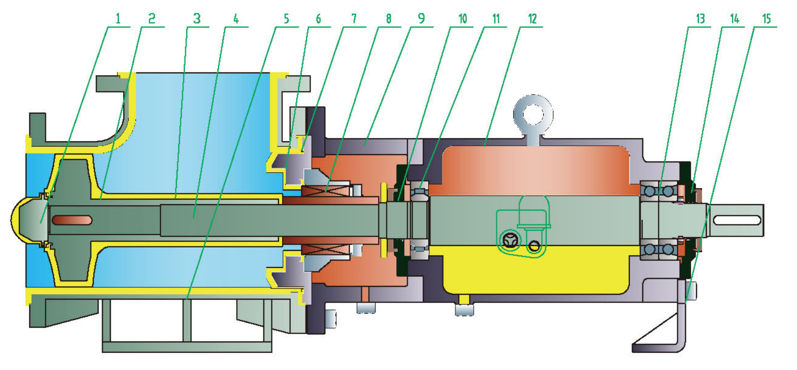 | ① Mur impeller | Baja berlapis fluoroplastik/PFA | ⑥ Penutup pompa | Baja berlapis fluoroplastik/PFA | ⑪ Bantalan depan | Gcr15 |